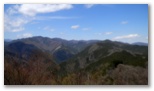 山頂に立つと、冷たい北風がビュービューと吹いていました。「ううっ、何だこの寒さは!」でもこの岩茸石山の山頂には、特筆に値する眺望があります。大きな川苔山、その左に本仁田山、右に有馬山稜、そして棒ノ折山を擁する都県境尾根の山なみ。西方はるかに、雲取山も望めます。富士山の美しい姿は、富士山頂からではなく、他の山からよく望めるように、岩茸石山は奥多摩の展望台なのです。