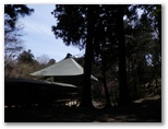 その北面の巻き道は、谷側の針葉樹林が北風を防ぎ、山側の落葉樹が太陽光をよく通し、穏やかな散歩道になっていました。北面とは言っても、太陽の高くなったこの季節、日当たりは十分にあります。落ち葉の斜面にすみれ類の多いこと、登山道を逸れて歩けば、必ず幾株かのすみれを踏みつけるでしょう。白いミヤマカタバミの花も、かなりたくさん見られました。そして、常福院本堂裏にそびえ立つ大杉が見えてくると、巻き道も終わりです。