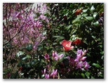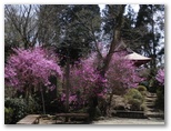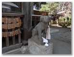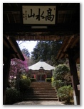 常福院の境内では、ミツバツツジが花盛り。まぶしい赤紫色が溢れそうです。本堂の狛犬は、春が来たからではありませんが、何とも幸せそうな顔。鐘楼に行くと貼紙があり、「静かな自然、静かな一日の為に、鐘をつかないで下さい。どうしてもつきたい方は願がいをこめて一度だけ」と書かれています。私は鐘楼の先の山道を少し登り、大岳山と御岳山を見つめました。朝に夕に、静まり返った高水山で撞く鐘の音が、谷を渡って向こうの山に届くでしょうか。