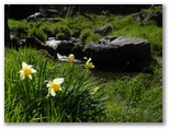 きょうは歩く行程が短く、花を見ることが主目的なので、遅めに出発しました。青梅線川井駅に着くと、無人の小さな駅舎を出て、急ぎ足で青梅街道に下ります。奥多摩大橋の信号を越え、バス停に向かったのは、一般の人と私との2名だけでした。昨年3月のダイヤ改正により、平日の清東橋行きは一日9便に増え、上日向止まりは今乗ろうとしている、9時58分発の1便だけです。清東橋行きが午後に7便あることで、この方面への下山が便利になりました。
