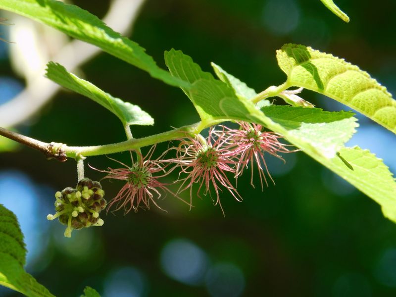 -- ヒメコウゾの雄花序(左)と雌花序。