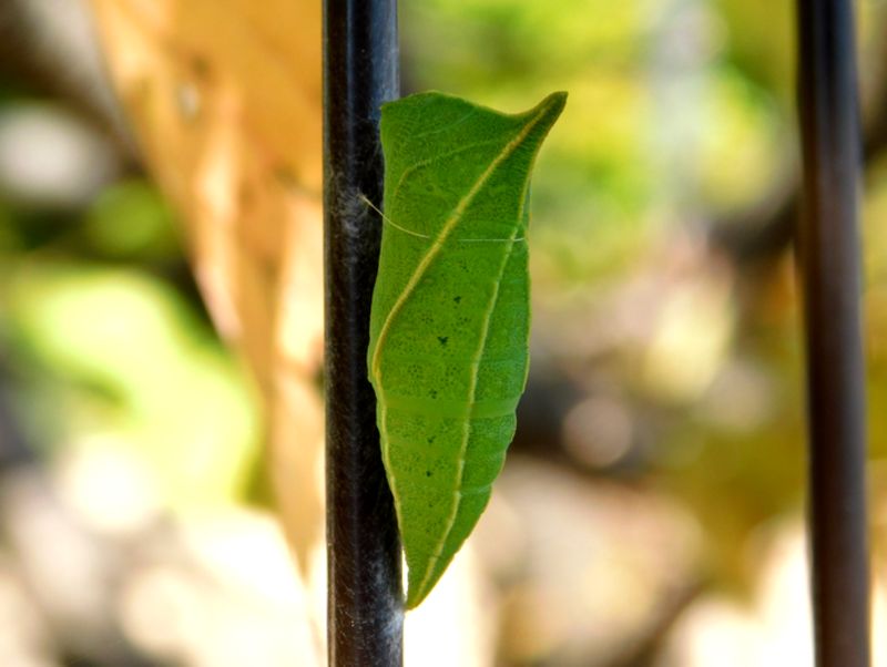 -- 自宅の近くで、アオスジアゲハの蛹。