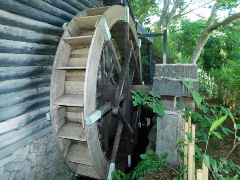 -- 水車が修理されていた。