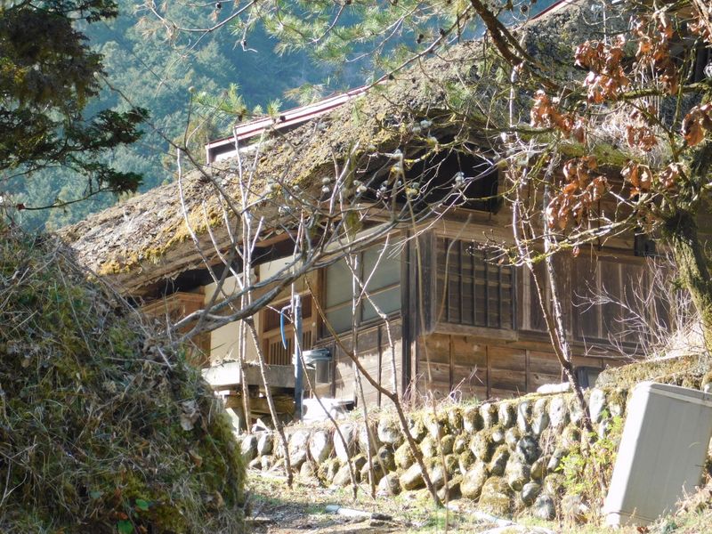 -- 萱葺き屋根が見える。14:21