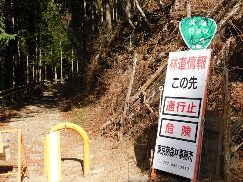 -- 上恩方町に通じる林道醍醐線は通行止。
