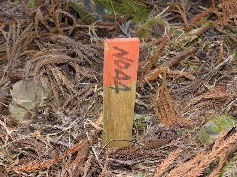 -- ジグザグ道に目印。下るほど番号が若くなる。