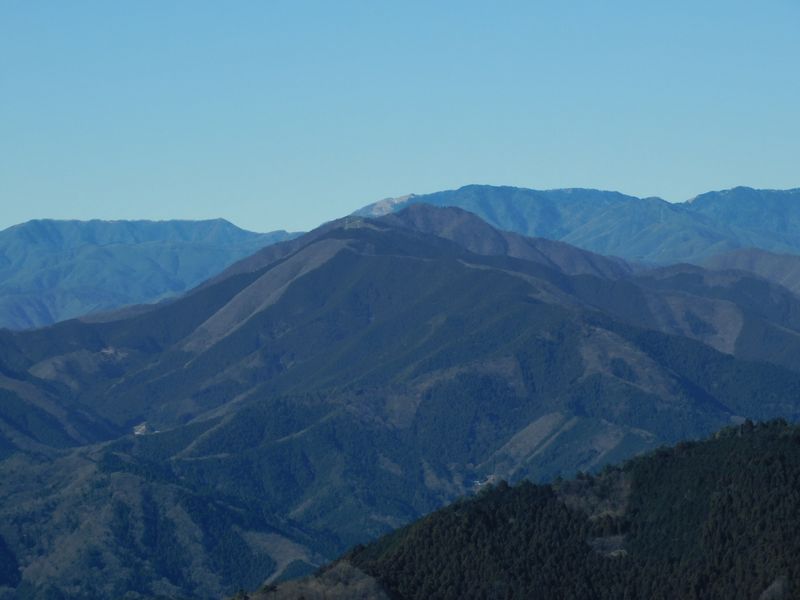 -- 雨降山とに権現山が重なる:背後に白谷ノ丸。