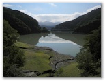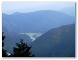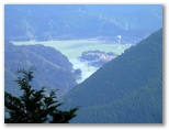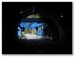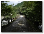 その方が身支度をしているうちに、私は落合トンネルに入りました。私はあまりトンネルを好きではありませんが、中でもこの落合トンネルは苦手です。小型車が1台走るだけで、魔物軍団が襲来して世が尽き果てるかと思うような、凄まじい轟音が鳴り響きます。速足で通り抜け、世附大橋の見える湖岸に出ました。