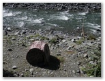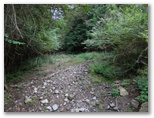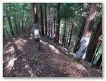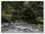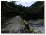 ここまで林道沿いに電柱と電線がありましたが、このダムでそれは終っていました。ただ、老朽化したカーブミラーは、引き続き、最後まで務めを果たそうとするかのように立ち続けています。沢が右に大きく曲るところでは、何本かの大杉が川原に倒れていました。でも、根の部分は土に埋まっていて、木は生きているようです。根元の土ごと崩落したのでしょう。ここで登山者風の若い人とすれ違いました。そしてこれ以後、大滝橋まで誰とも出合いませんでした。