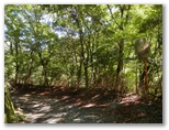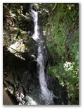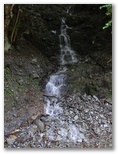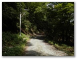 千鳥橋の池端で15分ほどお昼休憩し、地蔵平に向かいました。もう30分とかからないはずです。きれいな緑のトンネルを成す林道、幾段にも流れ落ちる細い滝、大トトロを髣髴させる山… そして11時40分、目指す地蔵平に到着しました。ヒガンバナが咲いています。地蔵堂は掃除がきれいに行き届き、お地蔵様のエプロンも清潔そう。お供えの缶詰とペットボトルの水は、獣や鳥を引き付けないためでしょう。