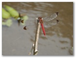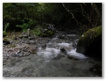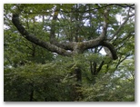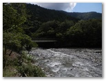 午前11時、千鳥橋に至りました。その名前から小さな可愛らしい橋を想像していたのですが、幅広の大又沢に架かるだけあって、それなりの長さもあります。橋を渡れば大又沢の左岸。右に二本杉峠への道を分け、左には小さな庭園風の緑地がありました。そのわきに小さな池もあります。トンボや蝶の舞が、静けさの中に動的な生命感を与えていました。緑地に腰を下ろせる丸木があったので、ここで昼食にしました。