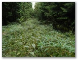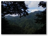 地蔵堂から小さな沢を渡り、広場に行きました。集落の名残はありません。広場の果て、北の空の下に鎮座するのは大界木山でしょうか。かつての住民たちが毎日眺めたであろう山々を、私も眺め渡しました。森林軌道はどこが終着点だったのでしょうか?分教場や家屋の跡は、わずかでも何か残っていないでしょうか?
