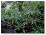 尾根の末端で、シノダケのトンネルをくぐりました。曲がりくねったトンネルは、小トトロを追いかけるみたいに、冒険好きの男の子に喜ばれそうなアトラクションです。最後にコンクリートの擁壁の上で左折し、舗装されたヘアピンカーブに下り立ちました。新松田駅行きバスが来るまで20分、そこでバスを待ってもよかったのですが、けじめよく大滝橋バス停まで歩きました。