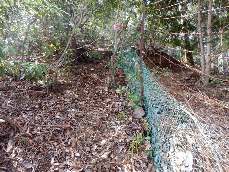 -- 金網を吊る棘なしワイヤを掴んで登る。9:46