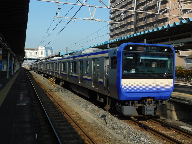 -- 君津で上総湊行きに乗換え。右は折り返し久里浜行き。8:31