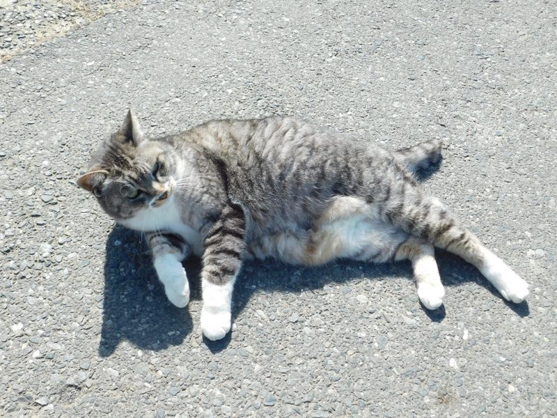 -- 通行人に甘える猫:帰りには別の人に甘えていた。