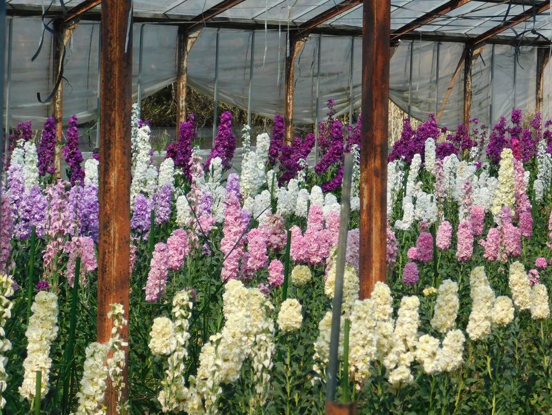 -- ストック(花)の温室栽培。