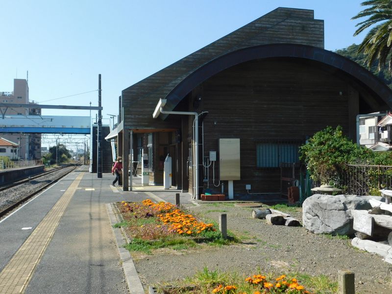 -- 和田浦駅舎:簡易改札機が見える。