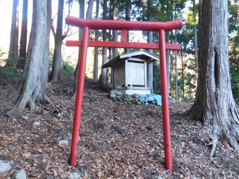 -- 小さな鳥居と祠がある。