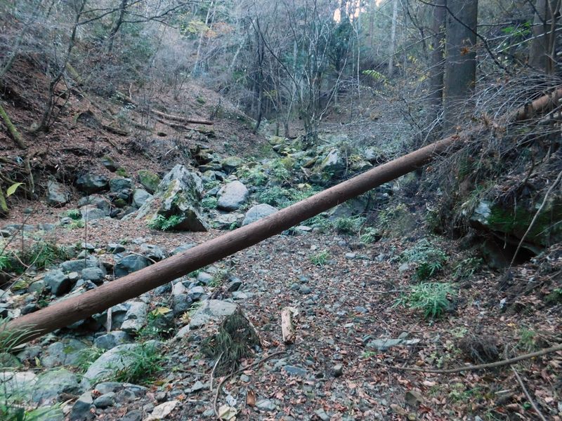-- この倒木の先から谷道に入る。8:37
