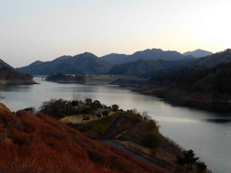 -- 黄昏の宮ヶ瀬湖。右遠方に大山。16:45