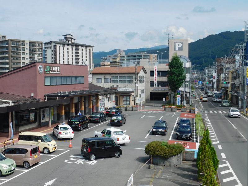 -- 上諏訪駅(東口)と国道20号。