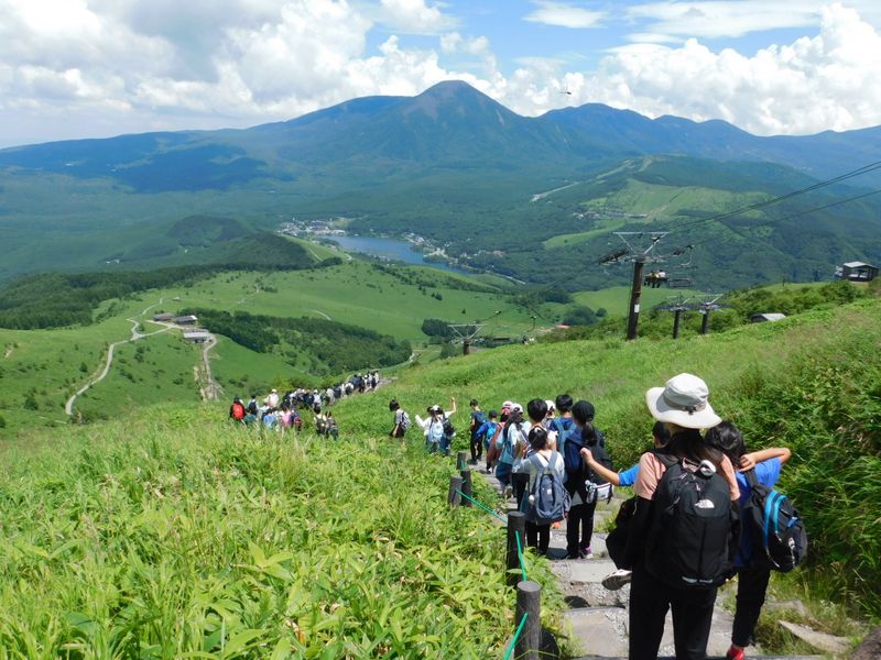 -- 遠足に巻き込まれた。正面は蓼科山と白樺湖。