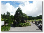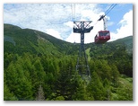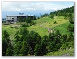 来たバスは「定期観光バス」と称していましたが、横浜市内の路線バスと大差ない車両でした。違うのは、運賃がすべて100円単位という点。座席数は24で、4人立ちました。約50分でロープウェイ山麓駅に到着。すぐにチケット窓口に並びます。片道切符、1400円也。臨時便が出され、乗客100名、乗員1名、計101名が乗りこみます。私はゴンドラの最後部に立ったつもりでしたが、動き始めると最前部でした。北横岳や蓼科山を望みつつ、標高差466mを上っていきます。