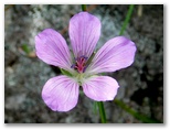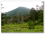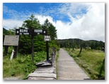 亀甲模様を見たくて、岩伝いに歩いて池を見たのですが、何やらよく分かりませんでした。天祥寺原に向かいます。嬉しいことに、その道はこれまでと打って変わって、なだらかな道でした。明るい草原や笹原を歩いていくと気分も高揚。きょう初めてのハクサンフウロも見ました。正面に、蓼科山が聳え立っています。すてきな庭園のような場所もあり、私一人しかいないのがもったいないと思うほど。亀甲池から正味20分ほどで、天祥寺原のT字路に至りました。