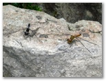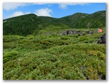 坪庭は、すてきな山上庭園です。ハイマツが多いのですが、コケモモ、クロマメノキほか、色々な山野草も咲いていました。でも、花が咲き乱れているわけではありません。もうそろそろ夏も終わりです。トンボはほとんどがアキアカネ。黒トンボはムツアカネのオス、黄トンボはそのメスです。トンボが多いせいか、メマトイはいません。ときどき蝶の飛ぶ姿も見られましたが、種を確認できませんでした。そして最大の魅力は言うまでもなく、眼前に聳える雄大な山々です。