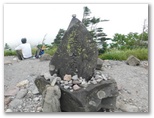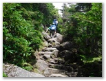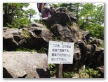 坪庭探勝路の木道と別れ、一般登山道に入ると、ゴロ石だらけになりました。登るほどに険しくなり、大小の岩石がほとんど切れ目なく続きます。もし東京の高尾山にこのような道があれば「難路」や「悪路」の扱いになるでしょう。実際、下り坂で前のめりに転倒する女性を目撃しました。狭い登山道におけるパーティーのすれ違いで、不自然な姿勢になり、バランスを崩したと思われます。すれ違いでは、下る人が安全な位置で立ち止まるのが登山の基本ルールです。