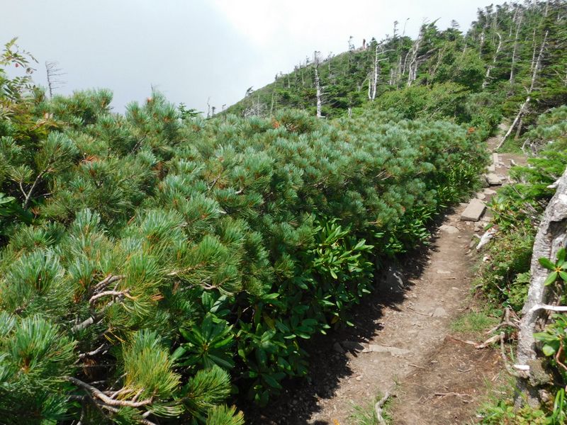 -- 南峰から北峰へ:ハイマツが優しく腕を擦る。