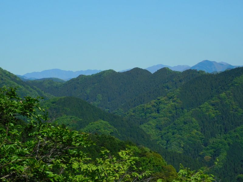 -- 北高尾山稜の彼方に、飛竜山と雲取山。8:24