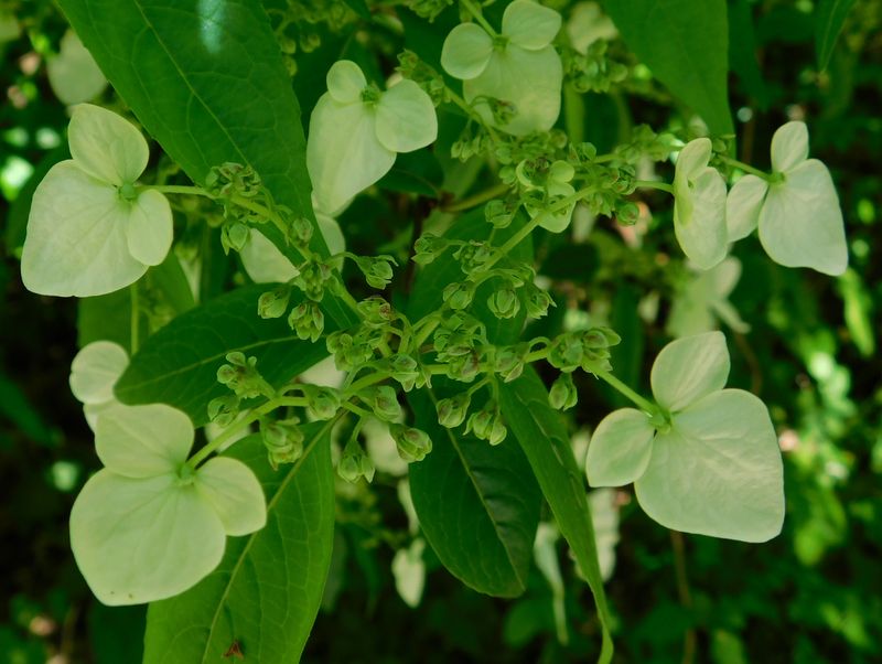 -- ガクウツギの装飾花と両性花。