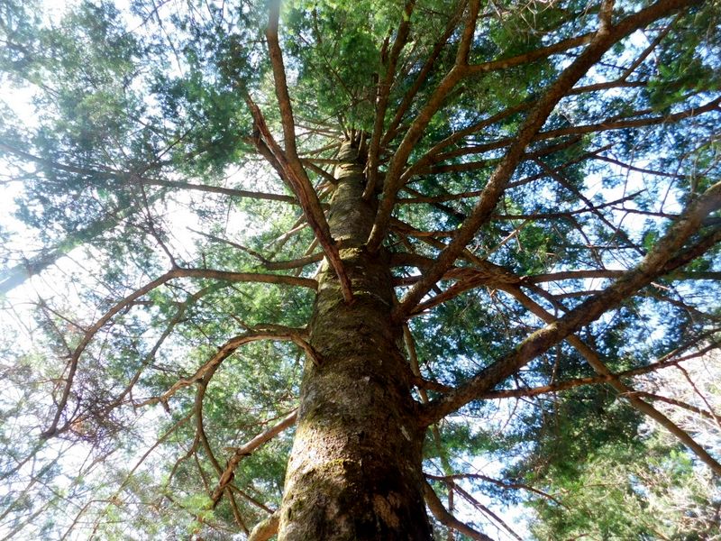 -- ウラジロモミを見上げる。