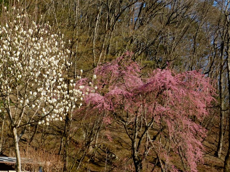 -- 塩平のハクモクレンとシダレザクラは今が満開。16:19