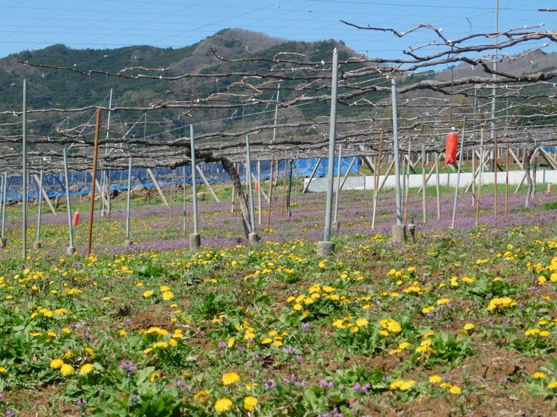 -- タンポポとホトケノザが混生するブドウ園が多い。