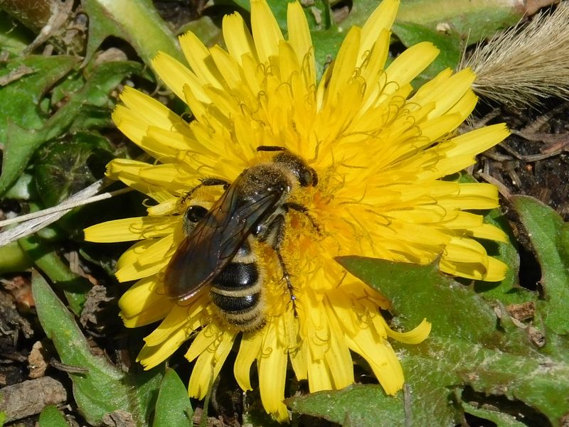 -- 花粉まみれの、キンケハラナガツチバチ。