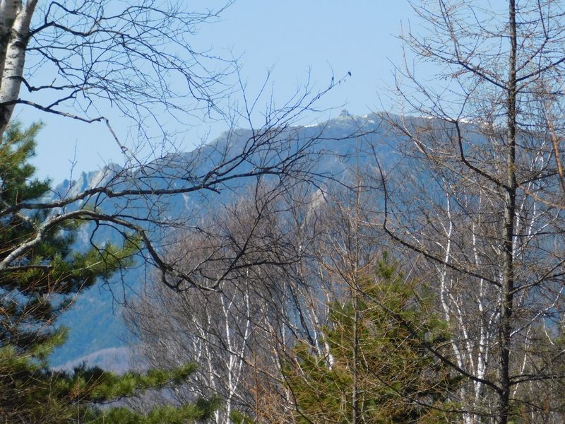 -- シラカバの小枝を透かして、金峰山の五丈岩。