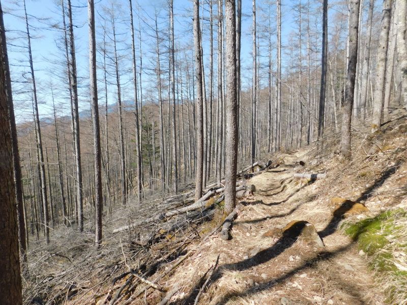 -- 間伐してある、カラマツ林。