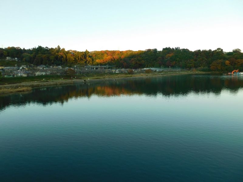 -- 夕暮れの桂川橋より、中央本線の電車を望む。16:09