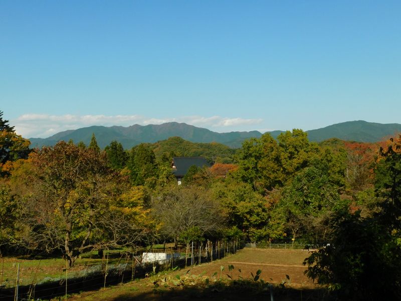 -- 笹尾根を背景に、桂林寺の屋根。12:46