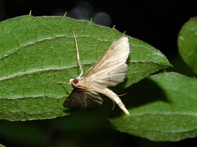 -- ウスグロノメイガの一種:葉裏に隠れてとまる。