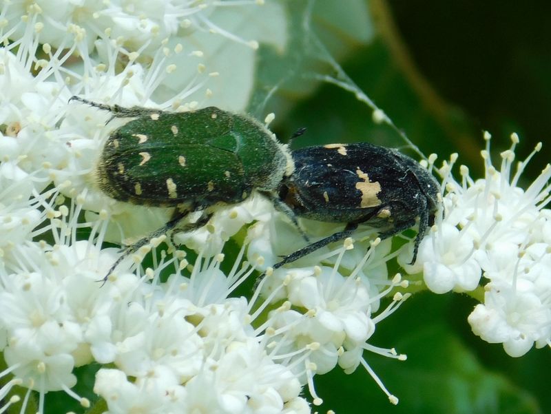 -- コアオハナムグリ(左)とクロハナムグリ。