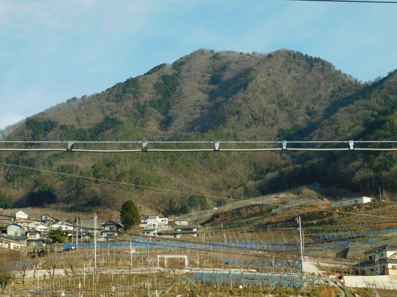-- 駅プラットフォームより、もう一度甲州高尾山。14:11