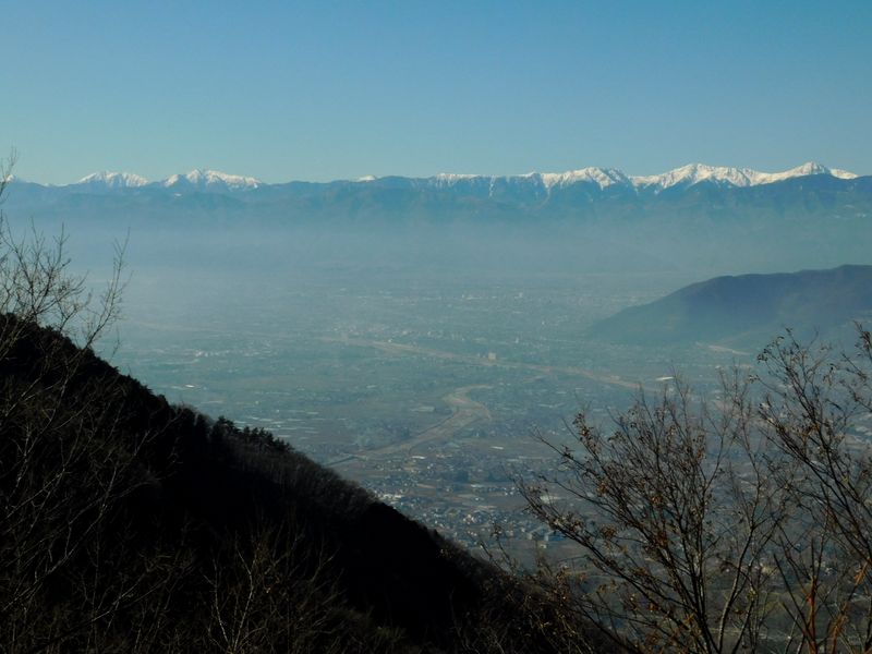 -- 甲斐御岳山展望台より、南アルプス中央部を望む。11:46