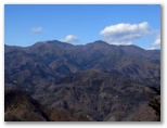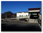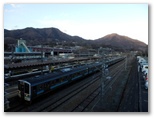 バスに乗り込むと、右の窓ぎわに座りました。ところが、道幅の狭いところでは、路肩すれすれを走ります。自分の体が、道路からはみ出しているような感覚になりました。幡野入口では、鈴ヶ尾山への取り付きを探しましたが、車窓からではさすがに無理。名勝猿橋は、関屋が最も近いようです。バスは国道20号を走り、猿橋駅北口で下車。駅の階段を上り、南口に回って百蔵山と扇山をもう一度眺めると、扇山の山頂にだけ、わずかな光が残っていました。