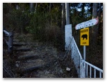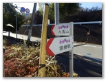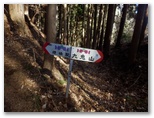 朝方の所用で、家を出るのが遅くなりました。猿橋駅に着いたのが、9時50分。すでに日は高く昇り、空気も冬なりに温んでいました。駅の南口を出ると、青空を背にデン、デンと控える百蔵山と扇山。行ってらっしゃい、と言われているようです。上々の気分で、まずは地図を取り出し、歩く方向を確認。そして駅から西方に5分ほど歩くと、三叉路に九鬼山を指す道標が立っていました。これで、もう安心。きょう歩くのは、道標のよく整備された道だけなのです。