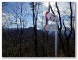 山頂には、誰もいませんでした。広大なパノラマを独り占めです。ここに至るまでコマ切れに見て来た山なみが、樹木に邪魔されずに、きれいにつながりました。で、富士山は? 完全に雲に包まれていましたが、ちゃんとありました。富士山と御正体山の方向が景観伐採されています。富士山がきれいに見えていたら、天狗岩まで足を延ばしたでしょう。今はここで十分です。私だけの山頂と、私だけの時間。昼食の残りを全部ほおばり、熱い紅茶をゆっくりと飲みました。