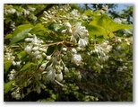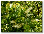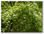 低い尾根の小松ハイキングコースに、横道から入ります。左右に樹木や竹が繁って、眺望はありません。草木、花、虫などを楽しみながら歩きましょう。木漏れ日もきれいです。小松城跡は、私たちには何が何だか分からないのでパス。午後には雷雨があるかもしれないので、道草もできるだけ慎みます。ヤマツツジは、赤い花色の濃い木や薄い木など、個体差を見せて咲いていました。ハナイカダは、雌木と雄木とがあります。ウワミズザクラの花は、白いブラシみたいです。